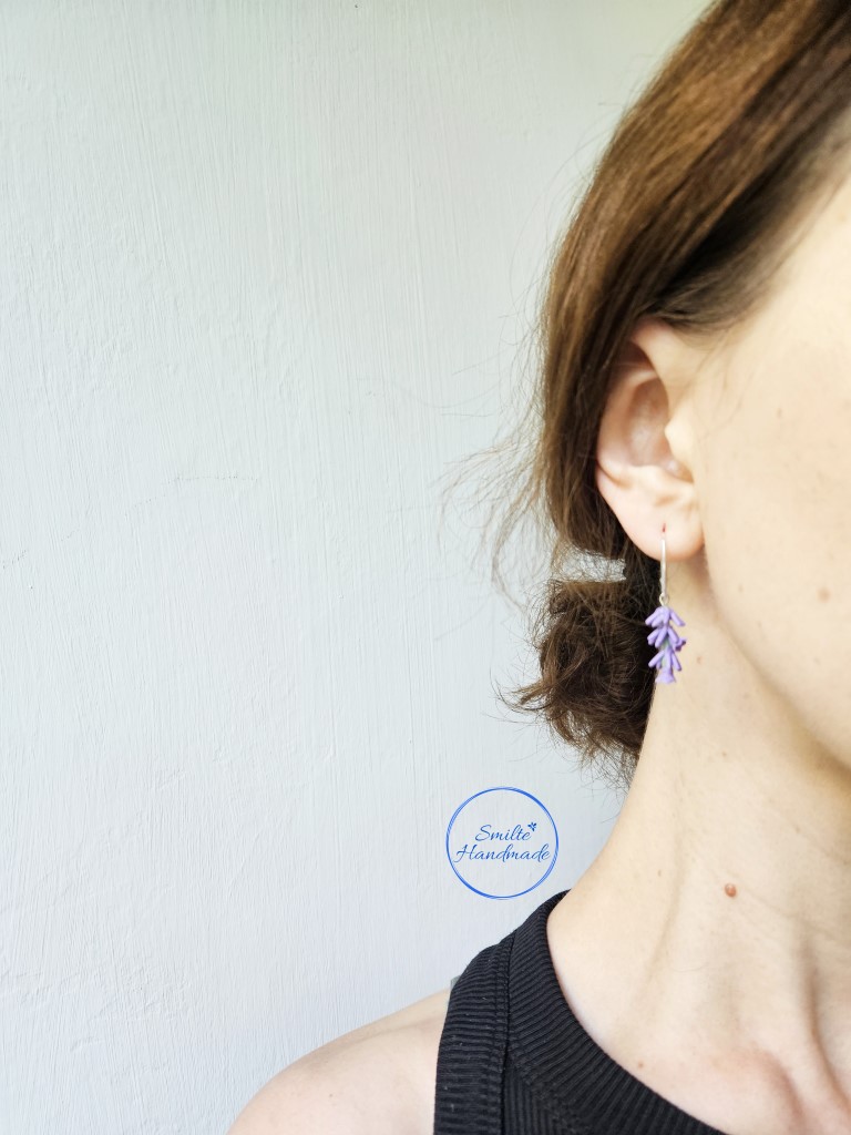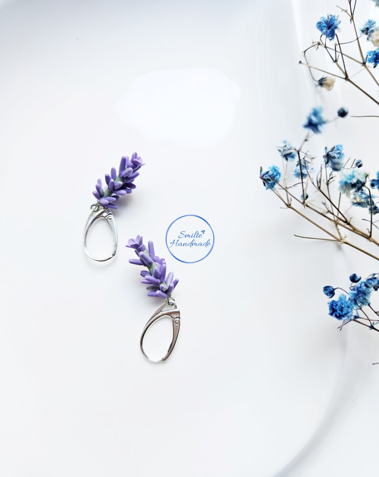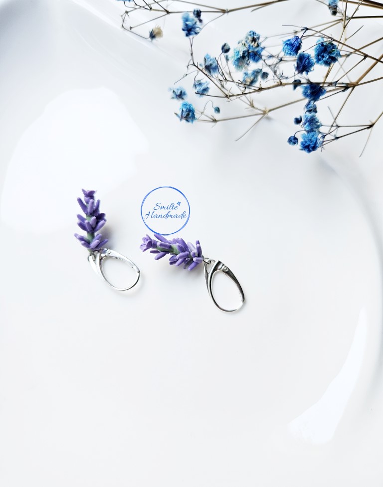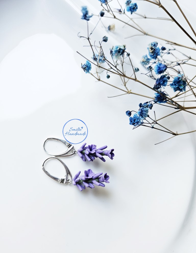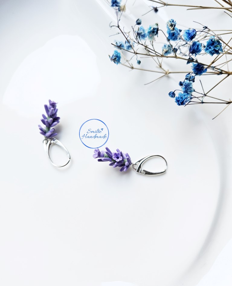 Šie rankų darbo auskarai skirti levandų gerbėjoms. Auskarų kiekviena detalė formuota rankomis, iš polimerinio molio, todėl auskarai nėra identiški. Gali nežymiai skirtis dekoracijos aukštis. Auskarai lengvi, nejaučiami ausyje. Tinkami puoštis kiekvieną dieną. Įvėrimas angliškas, sidabro.