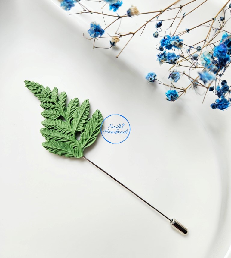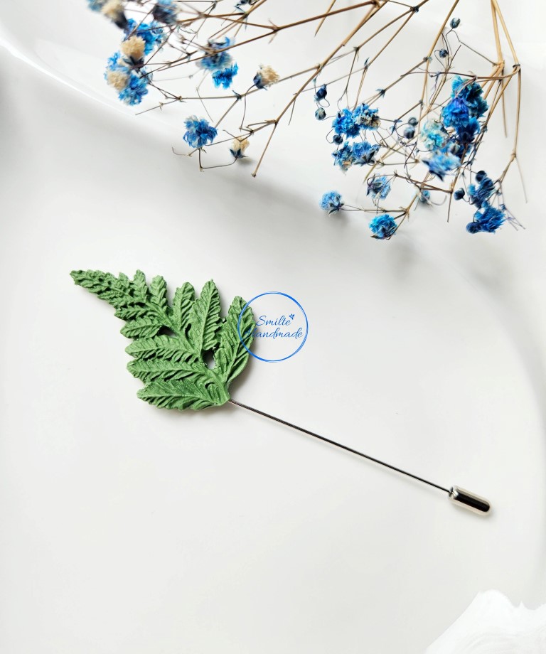 Minimalistinė segė su paparčiu. Originali, rankų darbo. Pagaminta iš polimerinio molio. Kadangi segė minimalistinio dizaino, puikiai tiks kaip rūbo akcentas. Galima pagyvinti vienspalvius megztinius, švarko atlapus ir pan.