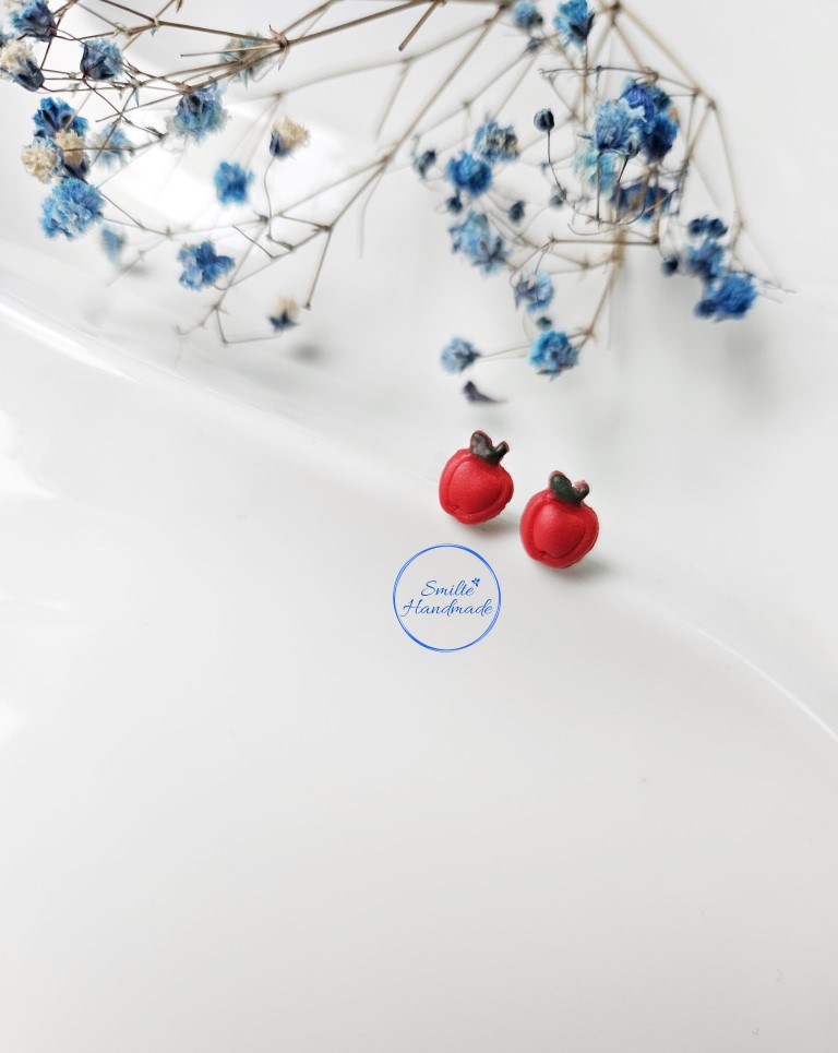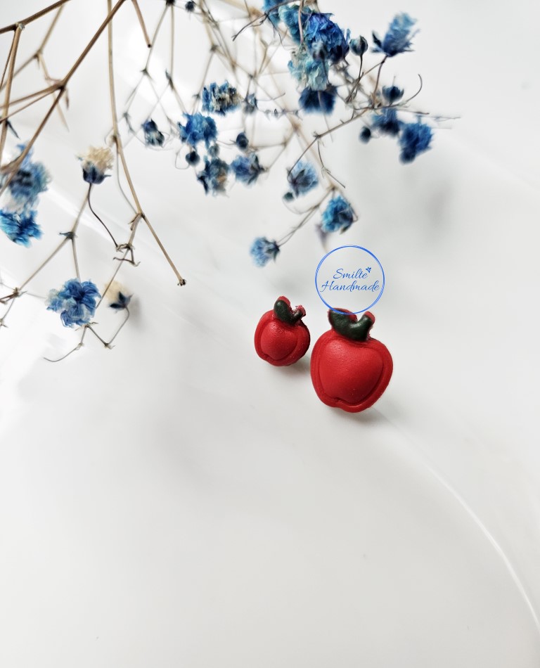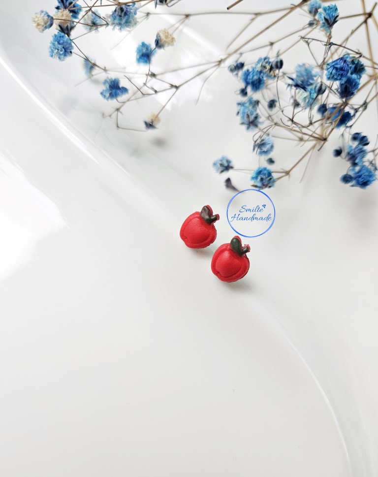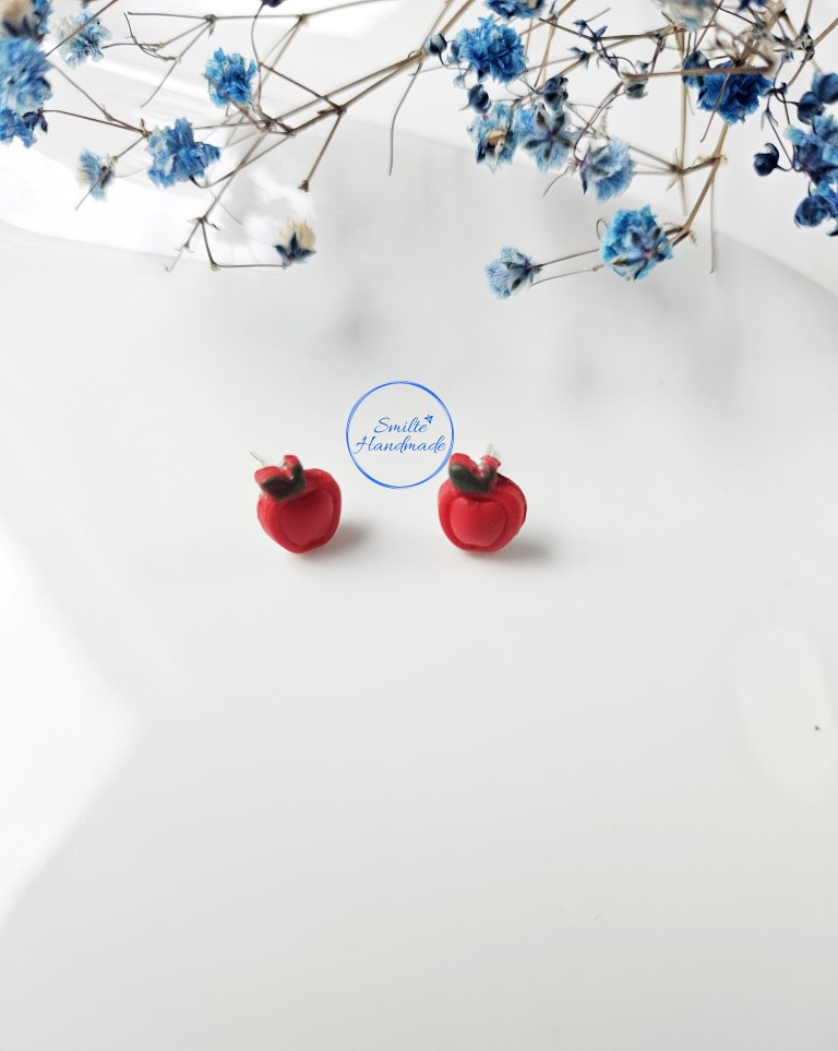 Mažučiai, minimalistiniai, rankų darbo auskarai su obuoliais. Jei ieškote nedidelių, bet žaismingų auskarų, šie kaip tik Jums. Auskarai lengvi, nejaučiami ausyje. Pagaminta iš polimerinio molio, įvėrimas adatėlė/vinukas (sidabro).